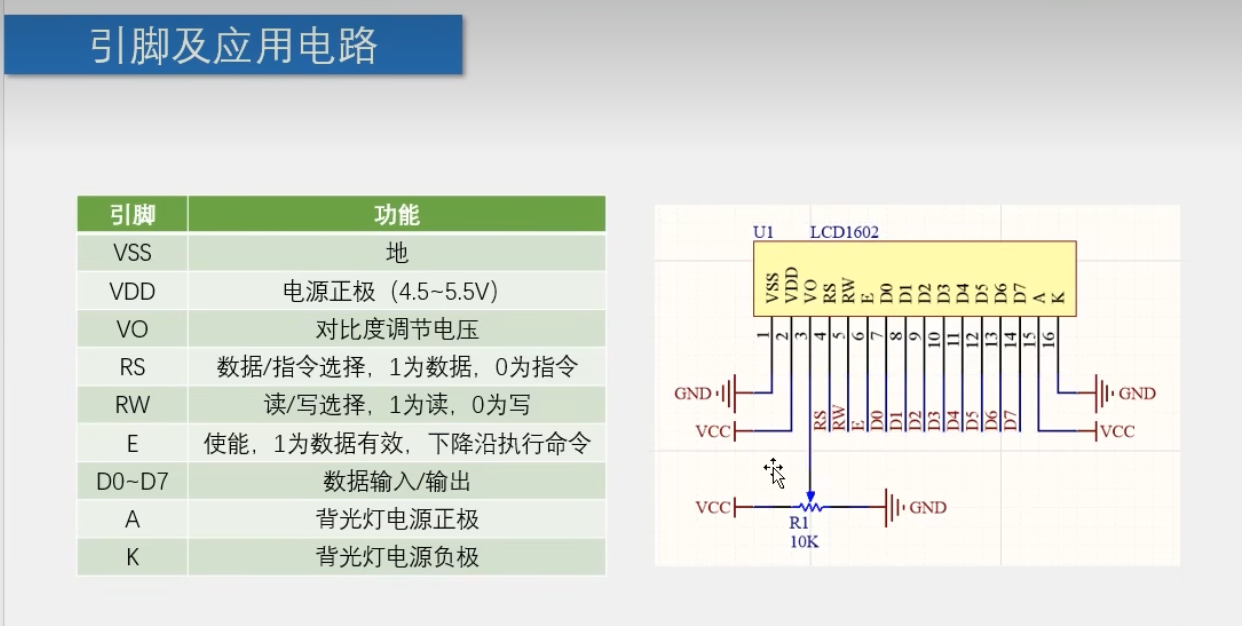 RS(在哪写)&RW(写什么)&E:控制引脚,控制D1~D7