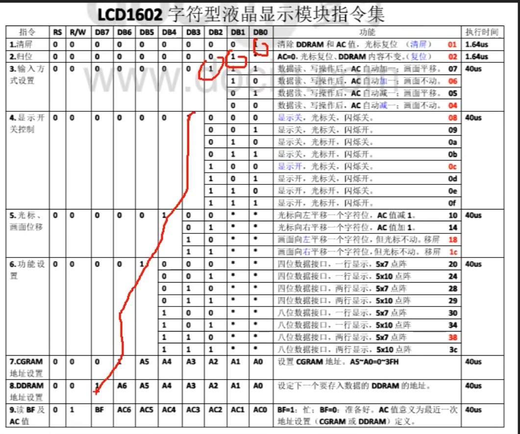 - 特别是在DB7置1绝对是要操作DDRAM