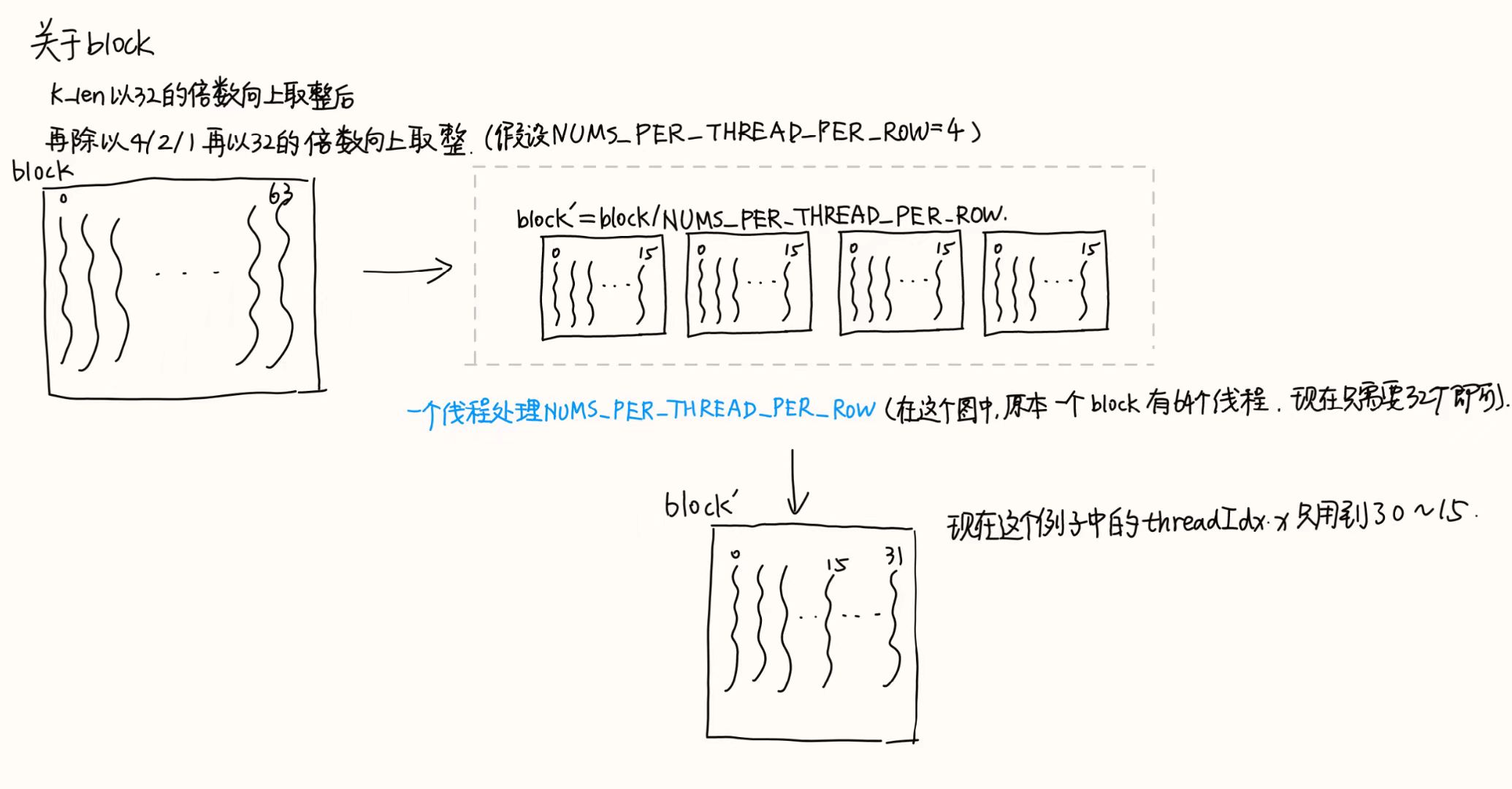 👇根据线程访问顺序匹配(从blockIdx到threadIdx,threadIdx的跨度是顺序的)cache_offset = blockIdx.y * kv_head_num * max_seq_len * head_size + blockIdx.x/(head_num/kv_head_num)*max_seq_len*head_size+ threadIdx.x * vec_size;