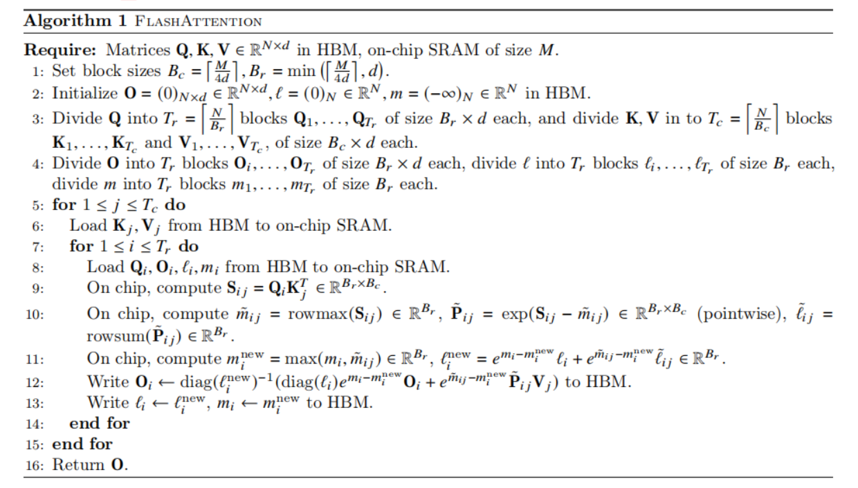 - 将$\textbf{O}_i$和$L_i$写回HBM作为第$i$个分块的$\textbf{O}$和$L$