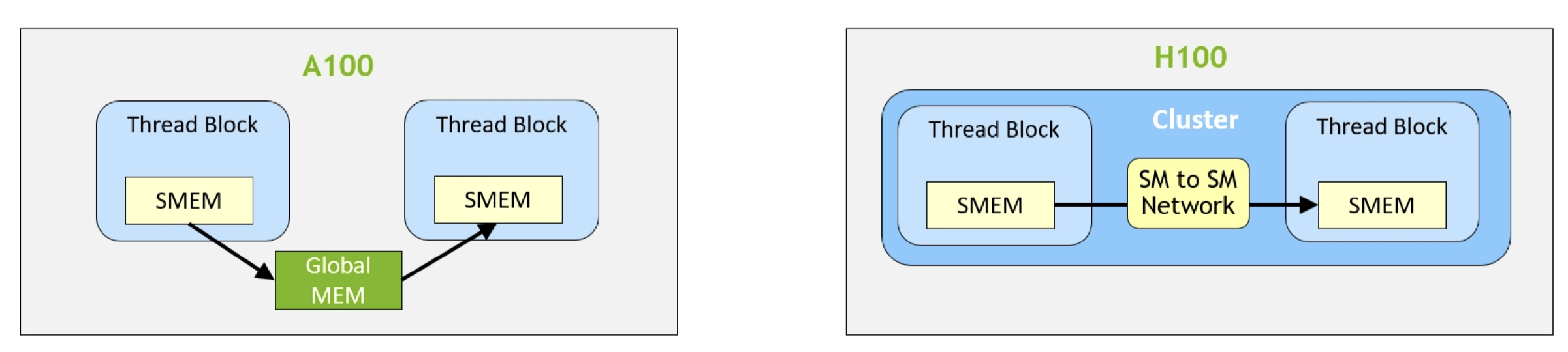 - TMA:意味着更快的GMEM到SMEM数据传输,可以异步执行